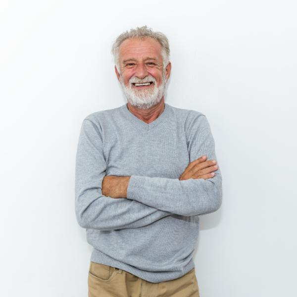Older man with arms folded